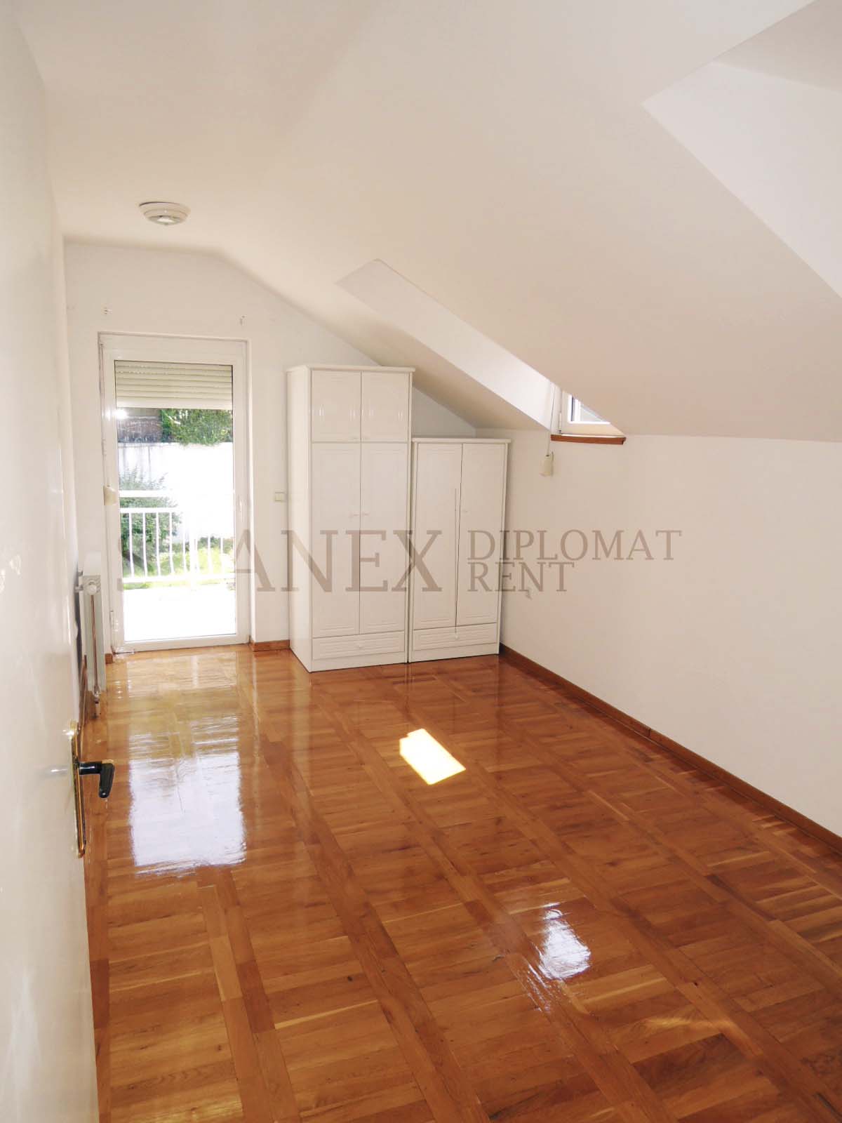 A beautiful, huge five-bedroom house located at Senjak. It equips five bedrooms and three bathrooms, as well as garage space and a large gorgeous back yard. The house is unfurnished, and it features gas/oil heating and air condition.